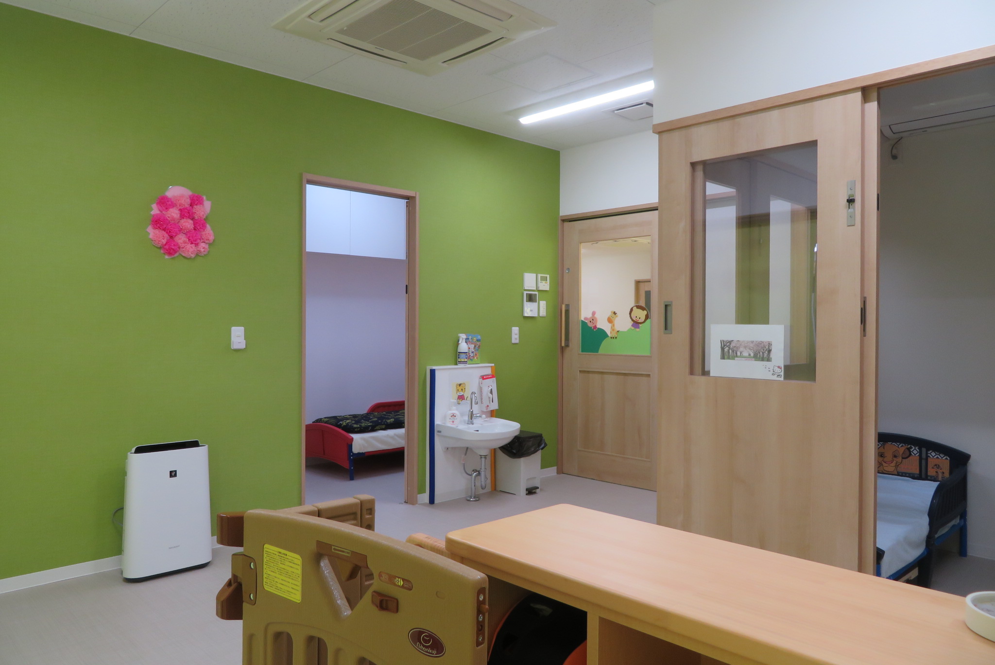 3つの個室にそれぞれベッドを設置しており、安心安全な病児保育を提供してます。