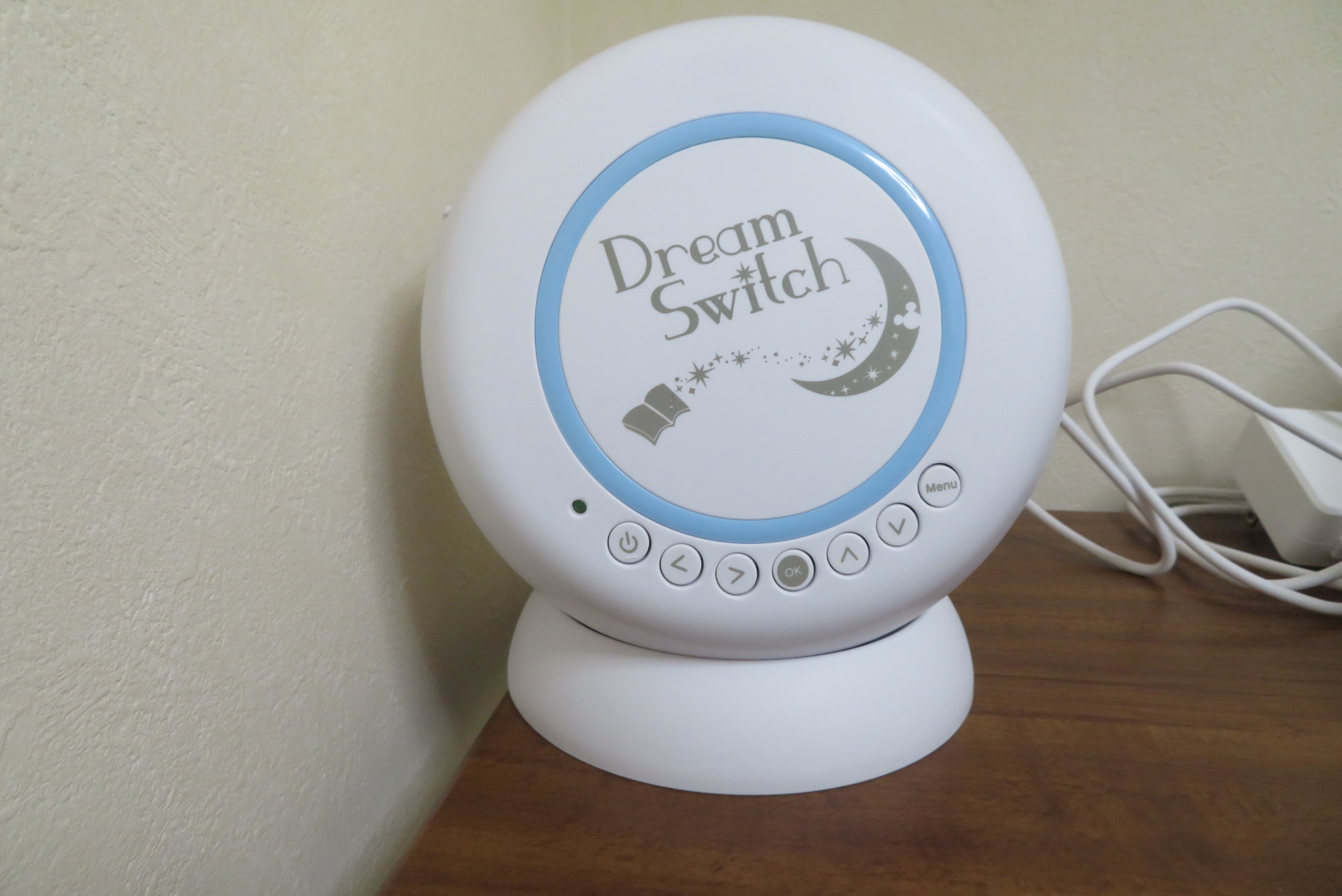 ドリームスイッチで、天井に映る“動く絵本”の物語を楽しむことができます。眠りを誘う絶妙なスピードで、ゆっくりと動きます。ゆったりとしたBGMとナレーターのやさしい語り口はお子さまの耳に心地よく響き、心を落ち着かせます。物語が終わると、ミッキーマウスが登場。「さぁ、目をつむってみて。おやすみなさい」など、お子さまに語りかけて、自分から眠ろうとする自主性を促すようにデザインされています。