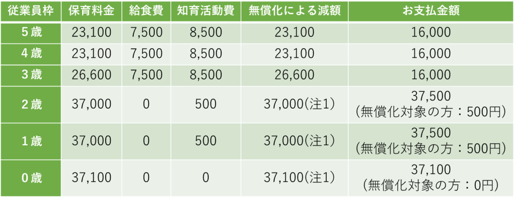 注1:0-2歳児の保育料金無償化は住民税非課税世帯が対象です。