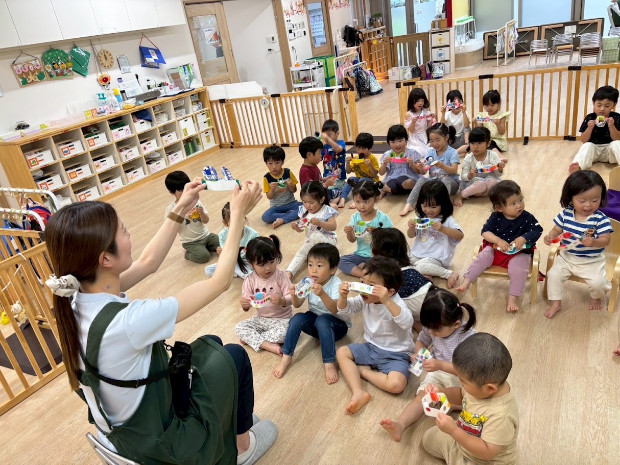 将来に於いて、単に英語を「聞ける話せる」レベルではなく、英語で「コミュニケーションを図れる」能力の基礎づくりを行います。姉妹校のリッツナーサリースクール・マーブルクラスのレッスンをそのまま入れます。さらに英語担当の保育の先生が週2日レッスンを入れます。目標は児童英検合格レベルで、毎年4・5才児クラスの園児さんが受験し良い成績をのこしています。